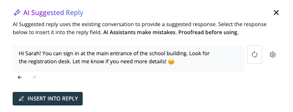 - The AI Suggested Reply feature will read all the messages from the conversation in the past 48 hours to generate a response.