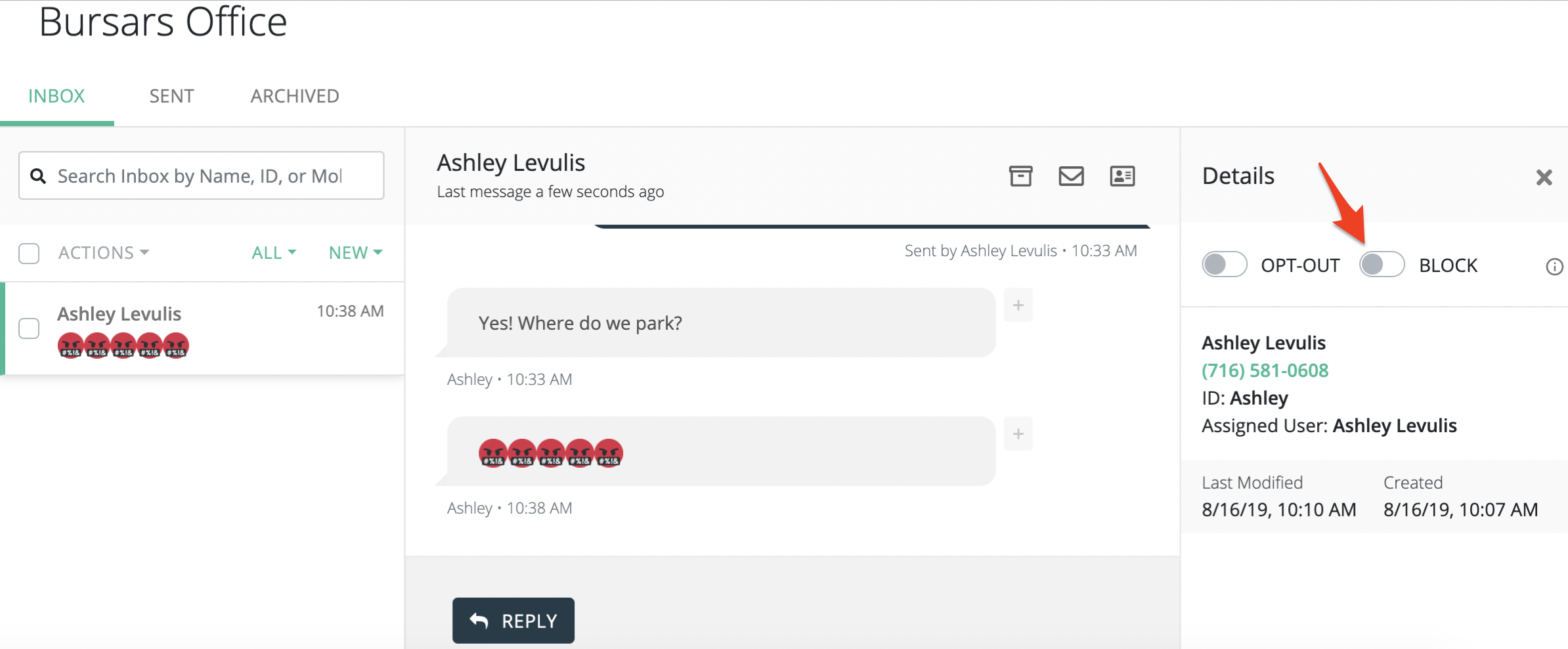 4. Once the number is blocked, the number will also be automatically opted-out for the entire team.