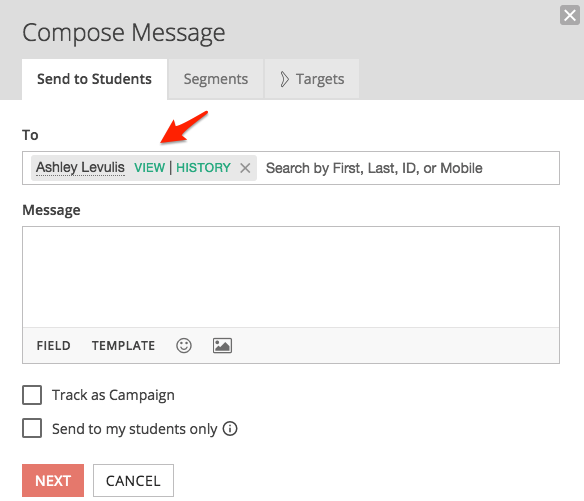 1. From Compose, enter the contact's name