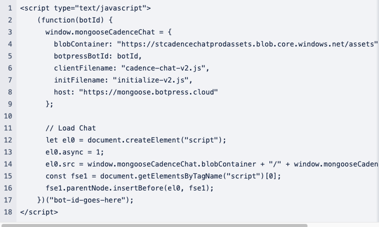 Installing the code on the URLs provided by your Implementation Specialist must be done when the bot is complete and your team is ready to make Mongoose Chat appear for your site visitors.
