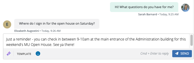 When composing your chat reply, instead of manually typing a message, users can click "Template" to select their own personal templates or team templates in the reply area