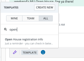 When you click "Templates" you are given the options of "Mine", "Team" and "All" to filter which templates to choose from. Use the search bar to narrow down the list of templates available.
