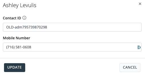 2. On the record with the incorrect mobile number, change the Contact ID so it is not the contact's actual ID (e.g., add "old_" to the ID) and click [ Update].