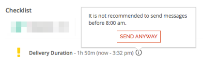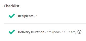 6. Review the text message. The Checklist area will provide feedback on your recipient count and send time.