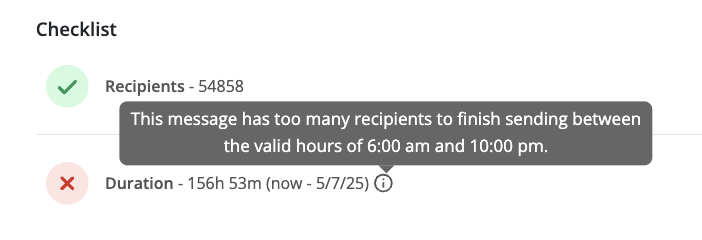 6. Review the text message. The Checklist area will provide feedback on your recipient count and send time.