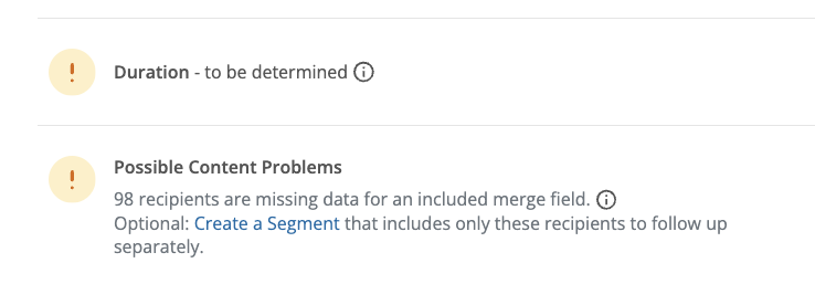 • "Exclamation point" indicates that an item needs to be reviewed before the text message is sent. Click the tool tip to see the warning.