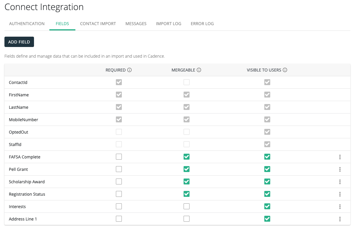 In order to successfully import data from one of the fields on the contact record in Connect, the field must first be configured in Mongoose. The purpose of configuring fields in Mongoose is to specify how the fields should be named in the platform and to set permissions.