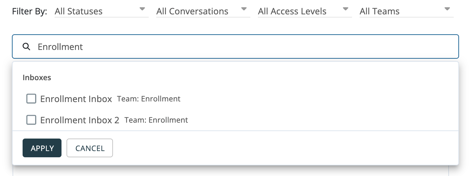 Select the inboxes you want to view and click APPLY to search that inbox. You can also select multiple inboxes.