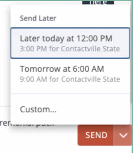 The times shown here are in the timezone of the organization. If you are in a different timezone than where your organization is located, your send later times will reflect what time the messages will send in your timezone and the timezone of the organization.