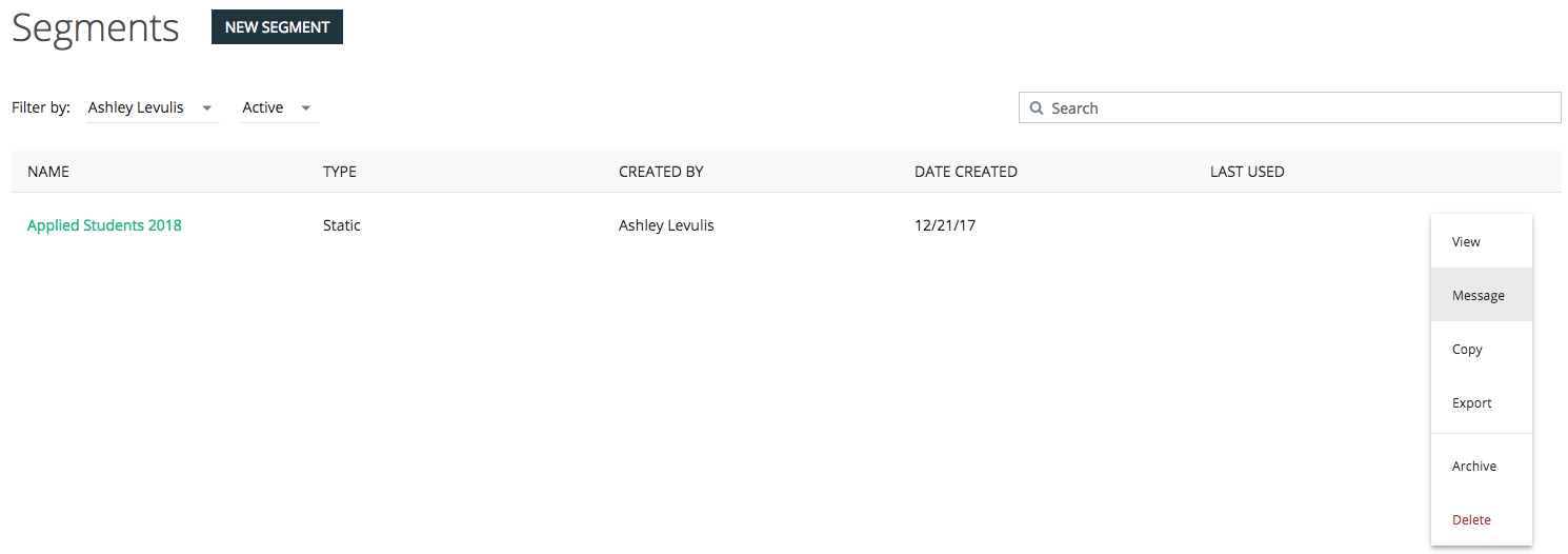 2. Click the dots to the right of the segment you want to send a text message to and select Message.