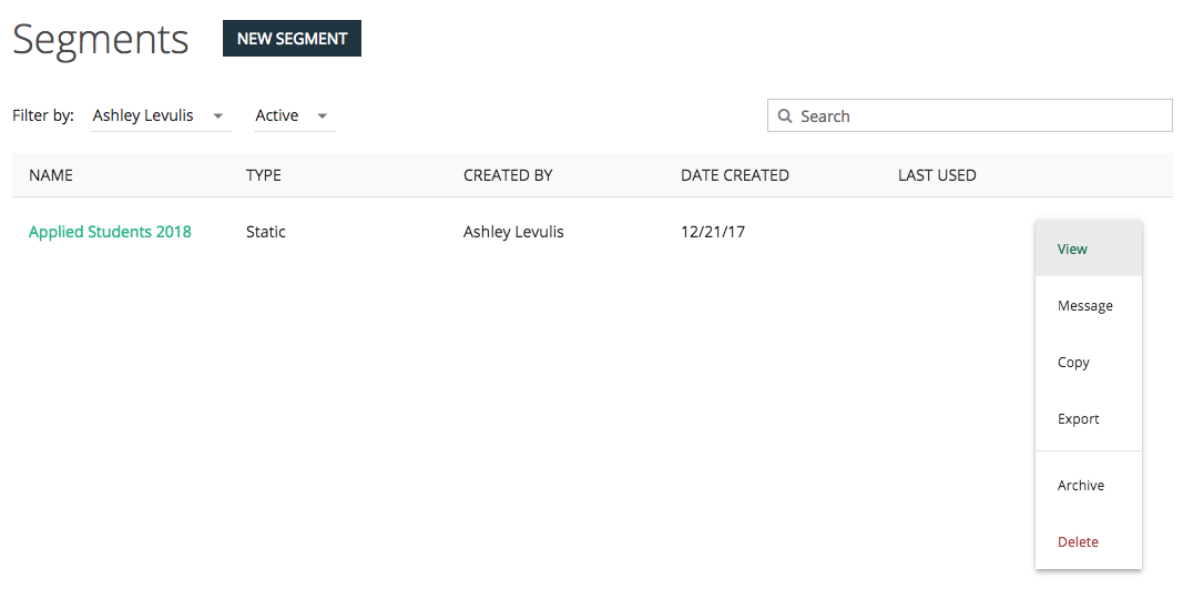 - Copy will allow you to make a copy of the segment and its included contacts.