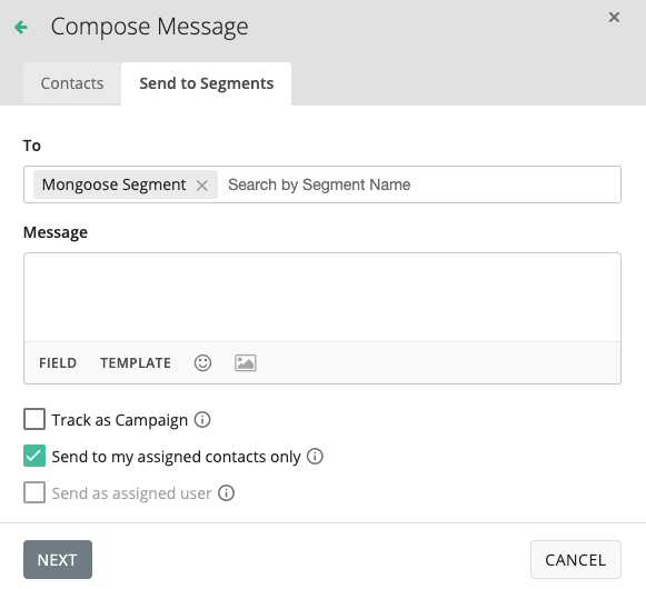- Message will allow you to compose a text message and send it to all contacts in the segment.