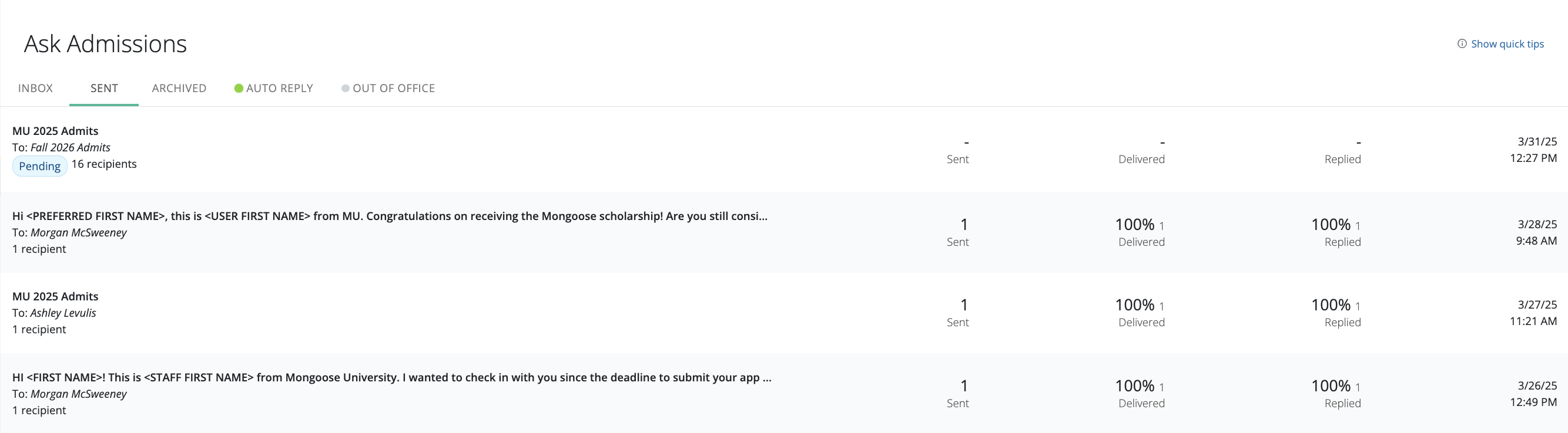 • The current sending progress (ex: has sent to 5 of 10 recipients)