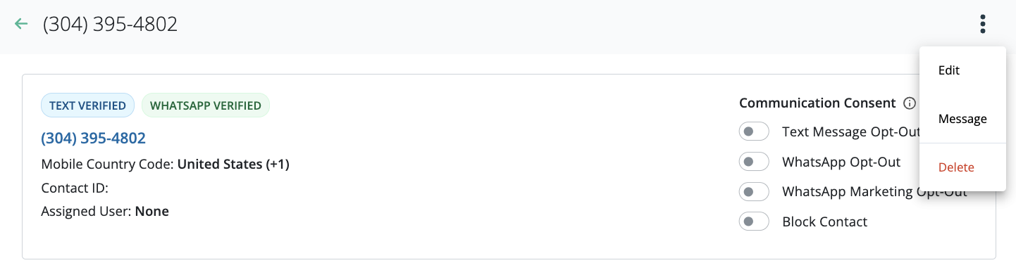 Note: Admins can also edit the Contact ID and Mobile Number on all contact records in Mongoose.