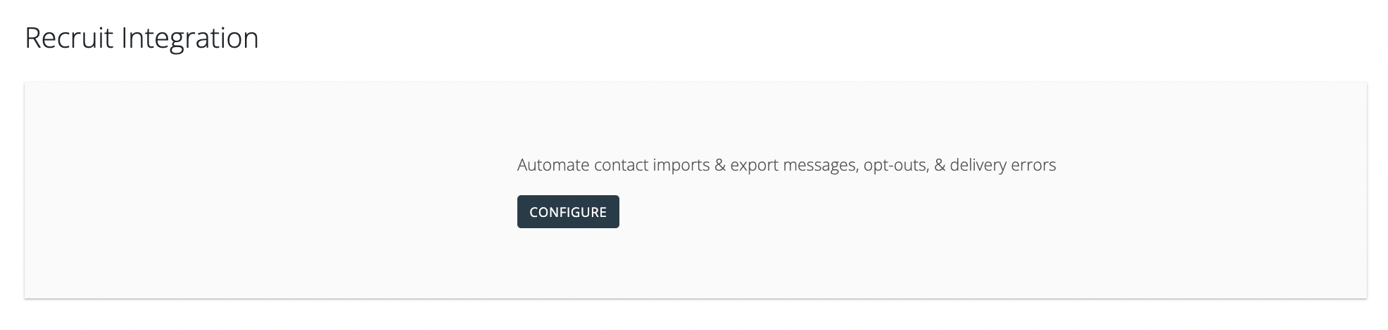 If you have never configured the Recruit integration before, the following screen will be presented: