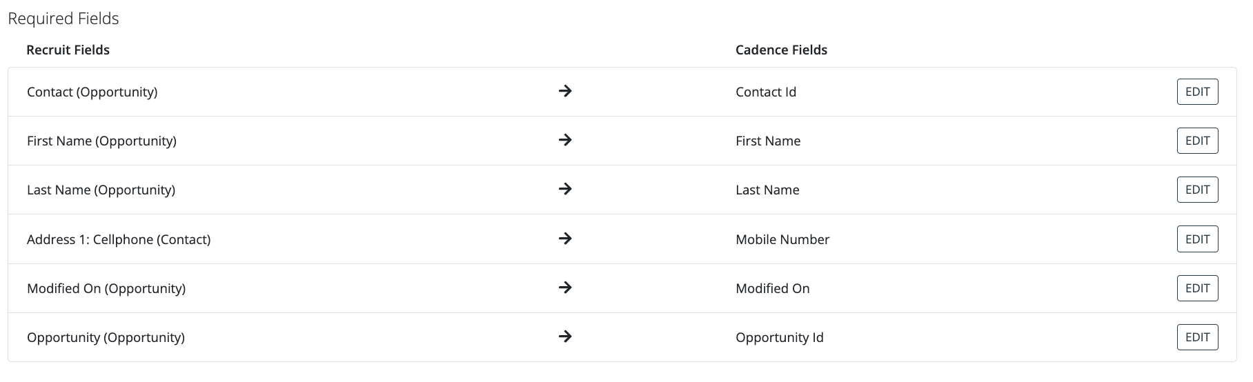 - To bring over any updates on the contact (opportunity + person), you will want to create a new field in Recruit and remap the Modified On to that new field.