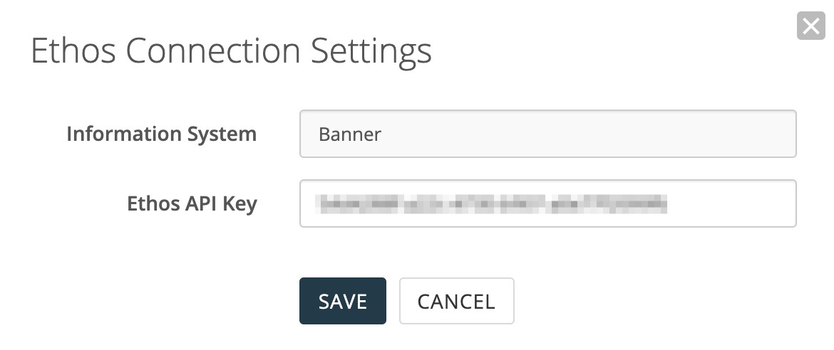 If your connection is successful, you will now have an integration dashboard page available. If you see an "Invalid API key" message, ensure the Ethos API Key is entered in correctly.
