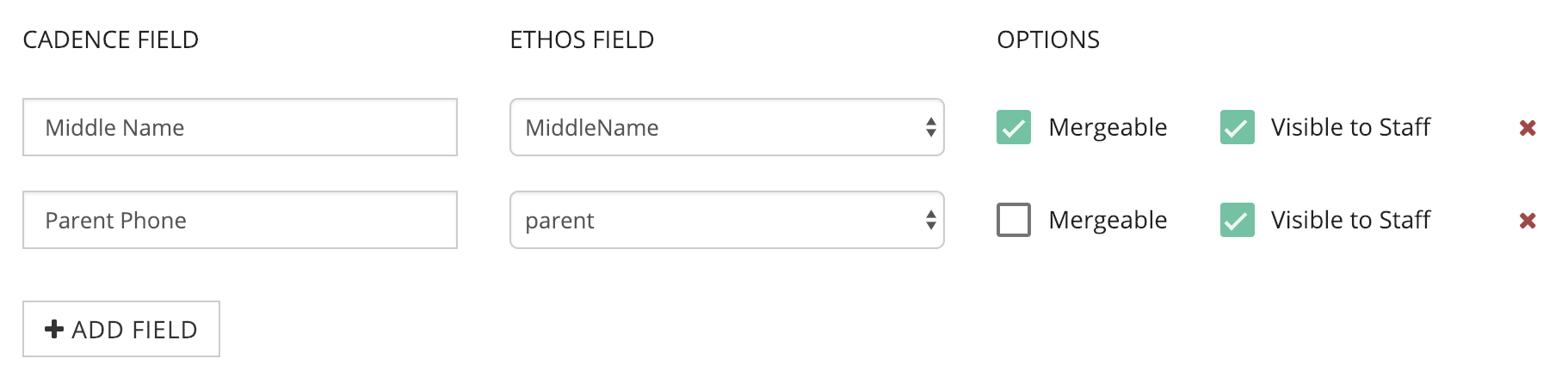 Note: Ethos ID will automatically be imported into the StudentId field on each contact's Mongoose record. If you would like to import an additional identifier for a contact, please see Custom Fields below.
