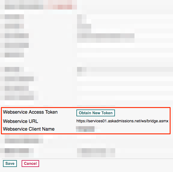 3. Click [ Obtain New Token] in order to view your webservice authentication token.