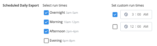 - Scheduled Daily Export: Exports can run up to 6 times per day.