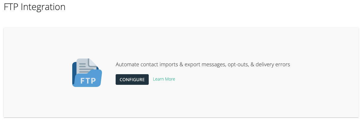 Navigate to " Team Name" > FTP Integration. If you have never configured the FTP integration before, the following screen will be presented:
