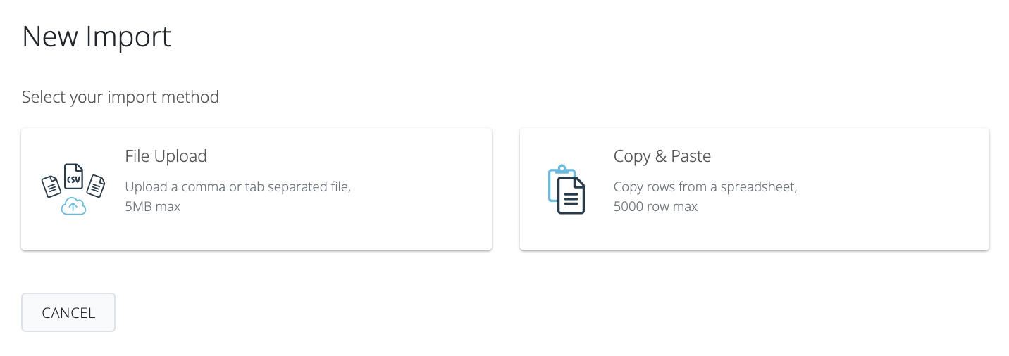 Click on "File Upload" OR "Copy & Paste"