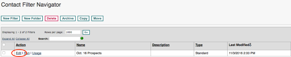To find the Connect filter ID, click on Edit next to the name of the filter.