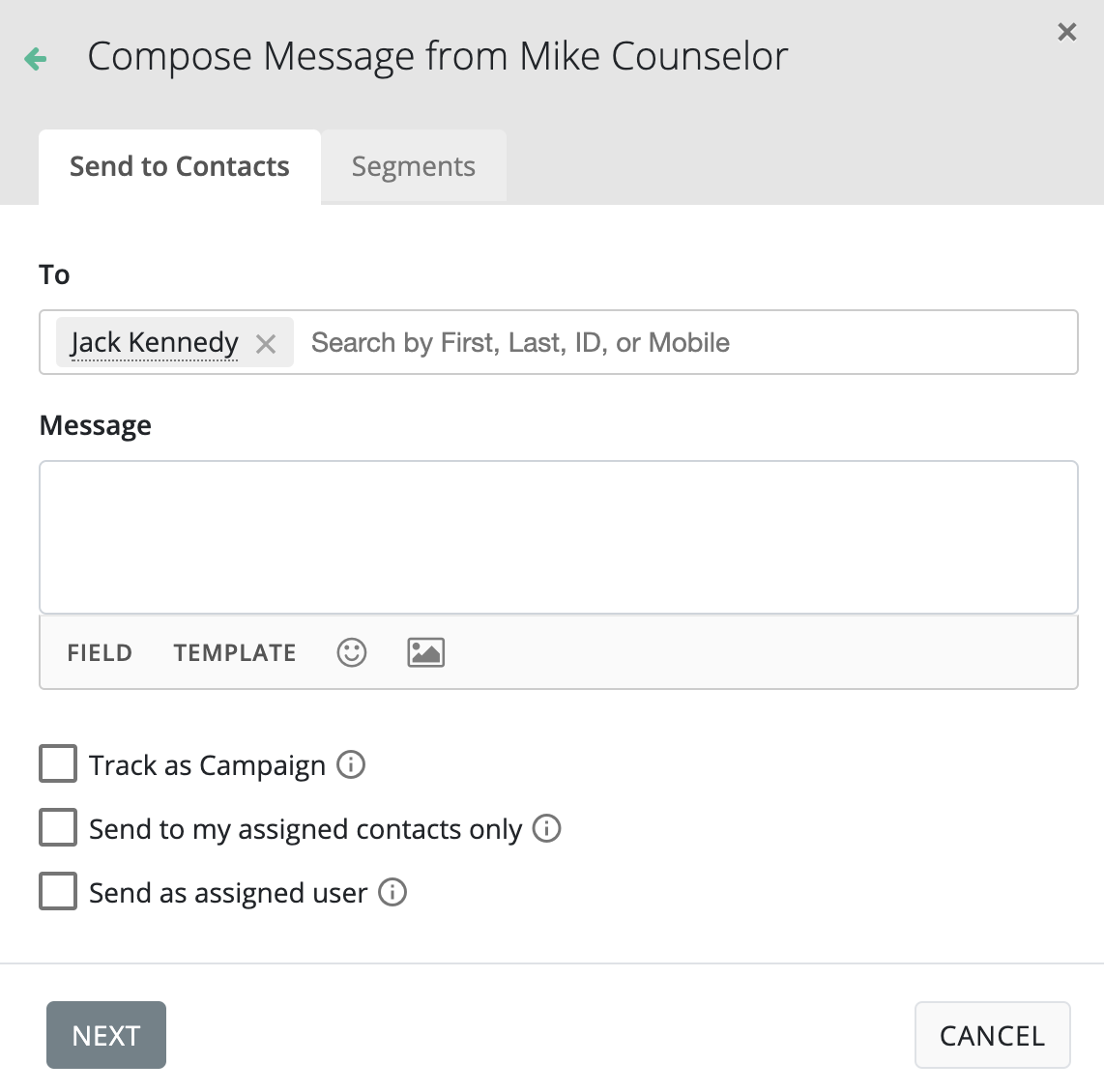 Contacts are imported into Mongoose by an Admin user responsible for configuring data fields and integration method. This allows other users to view contact records and send them text messages. Imported contacts show up on the Contacts > Search page, as well as in the Compose screen. If you would like to text a contact who has not yet been imported, you can do so by manually adding the contact to Mongoose.