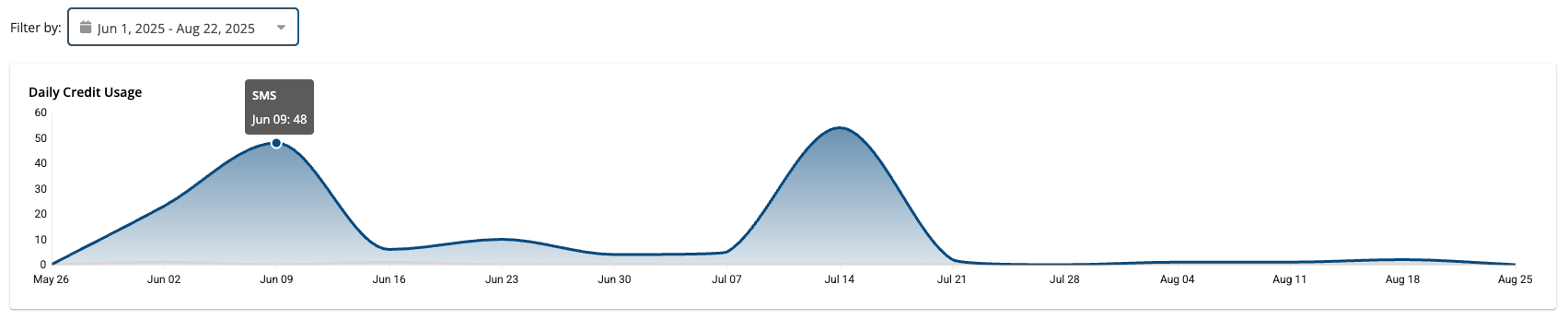 - Daily Credit Usage - This displays the amount of credits used per day. Use your cursor to hover over this graph to get additional insight.