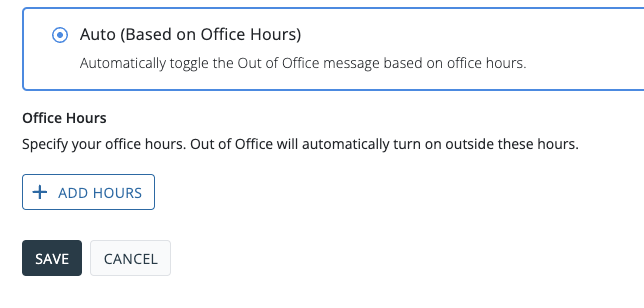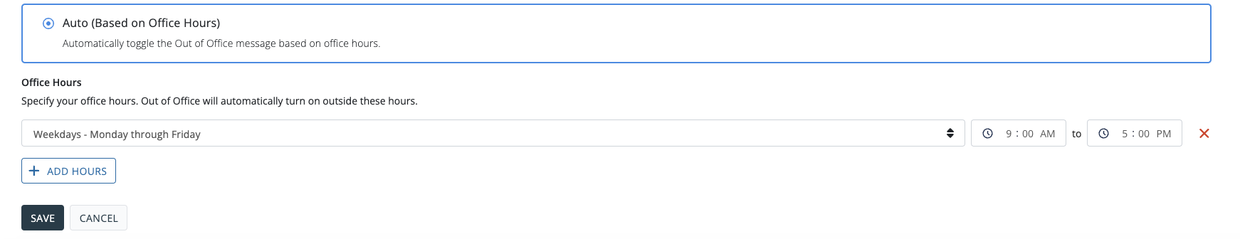 3. If you would like to set your Out of Office based on a schedule or your specific office hours, select " Auto" and click "Add Hours"
