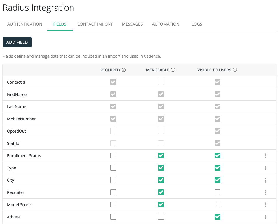 In order to successfully import data from one of the fields on the contact record in Radius, the field must also be configured in Mongoose. The purpose of configuring fields in Mongoose is to specify how the fields should be named in the platform and to set permissions.