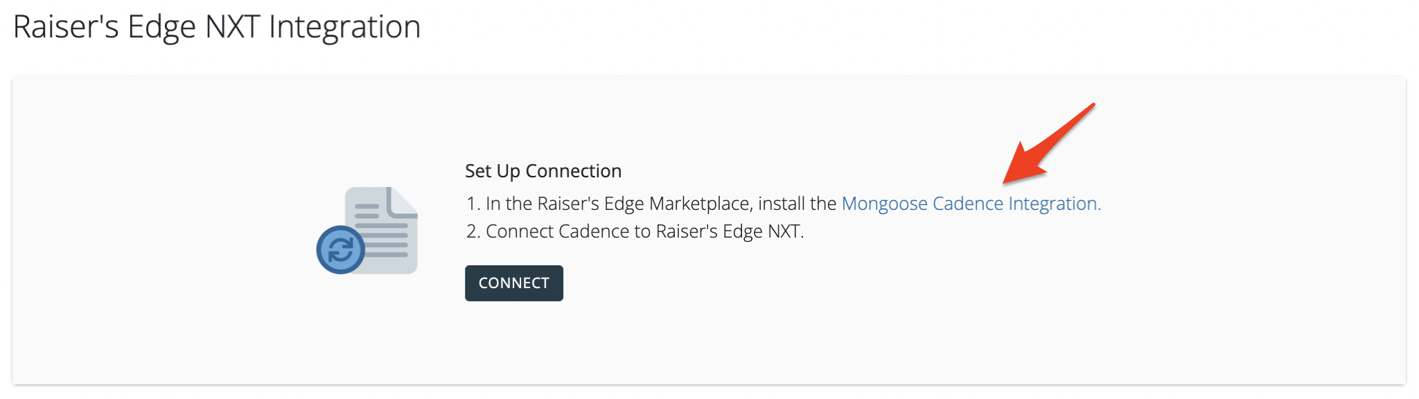 - Install the Mongoose Integration app from the Raiser's Edge Marketplace (a link can be found on the configuration screen in Mongoose) Note: An Environment Administrator has to install the Mongoose Integration