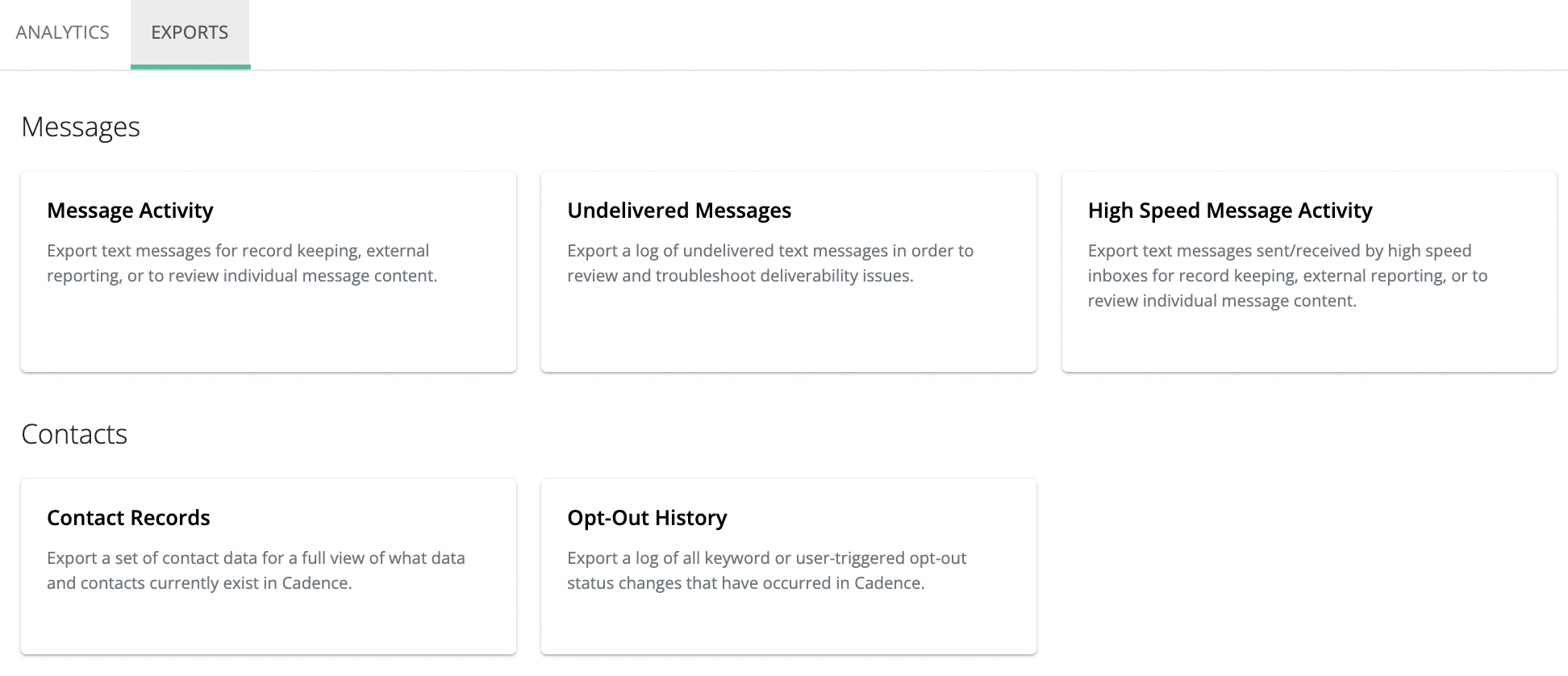 The Exports area will provide the ability to export (.csv file) different types of qualitative data.