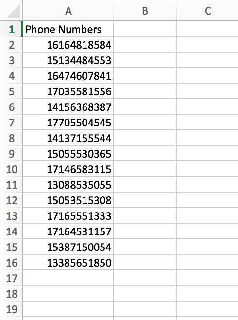 - If you are using mobile numbers, they must be 10 digits (or 11 digits if they begin with a "1").