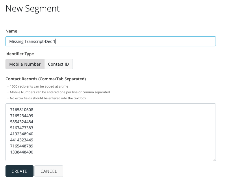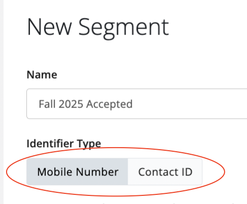Decide if you will use Mobile Number or ContactID as the identifier to determine which contacts are included in the segment. Note that only one may be used at a time.