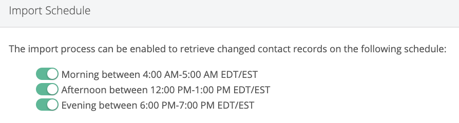 The import process can be enabled to retrieve changed contact records up to three times a day.