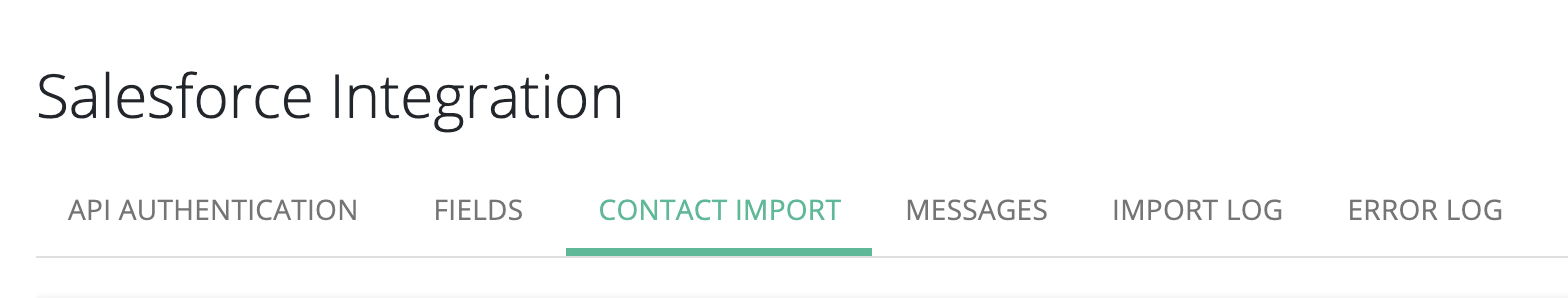 After authentication has been setup, you can begin configuring your import by clicking Contact Import within the Salesforce Integration.
