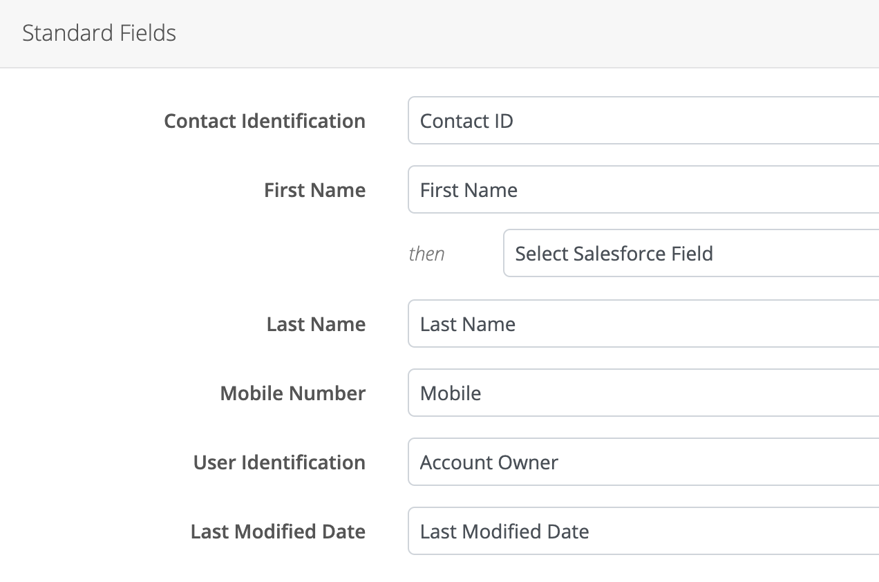 Mongoose requires a field to be mapped for synchronizing texting preferences and that is referred to in the integration as Opt-Out Field. Mongoose can utilize a field indicating either “Opt-Out” or “Opt-In” from Salesforce. The field must be either a checkbox or picklist.