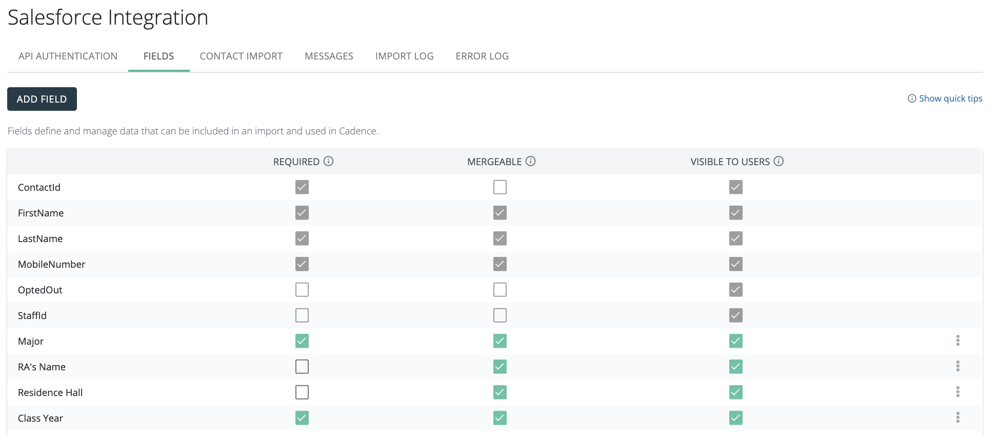 - If Mergeable is checked, the field can be used as a merge field in text messages.