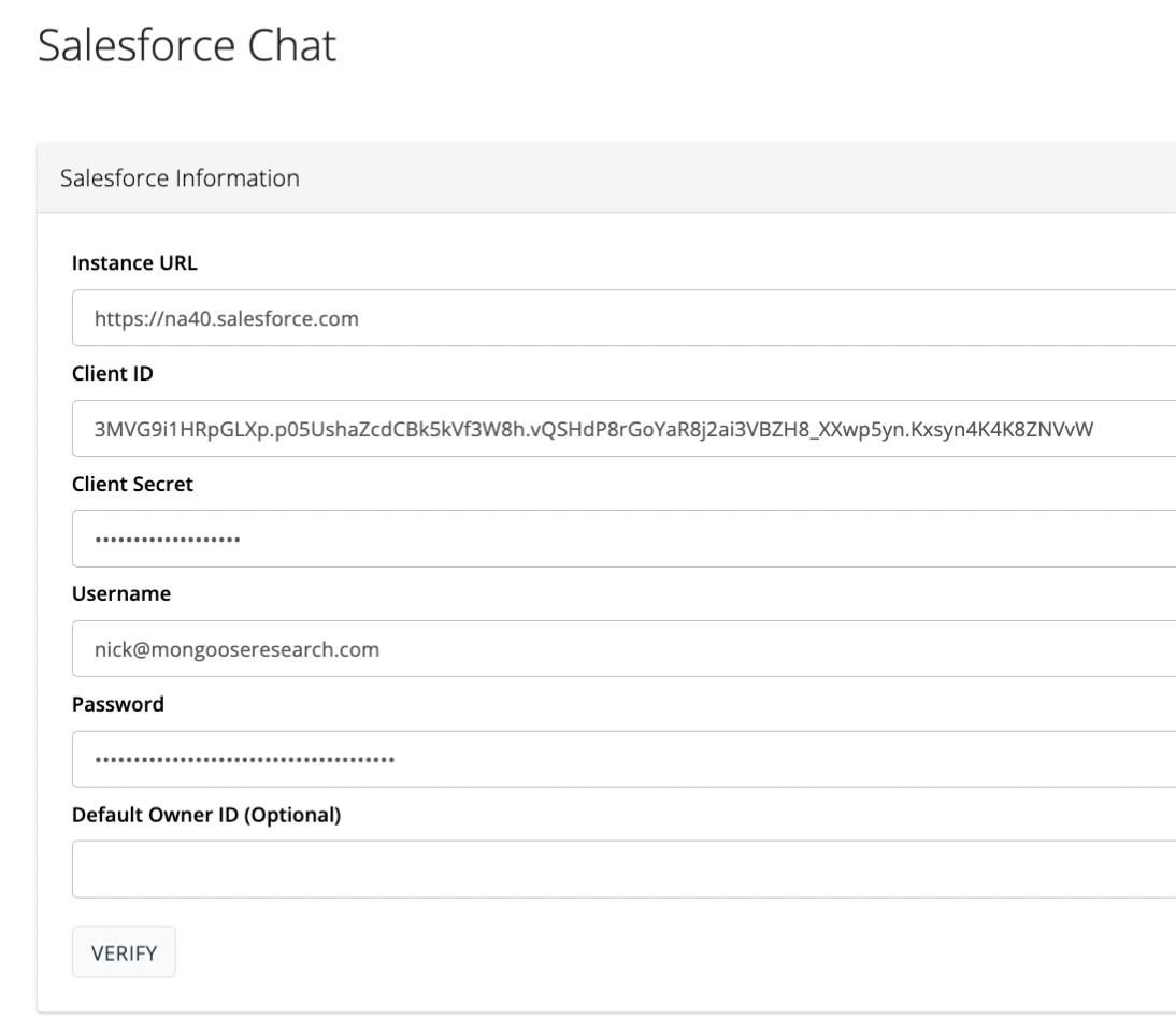 If you are using Mongoose Chat are interested in using the Chat Salesforce Integration--please reach out to your client success lead or implementation specialist.