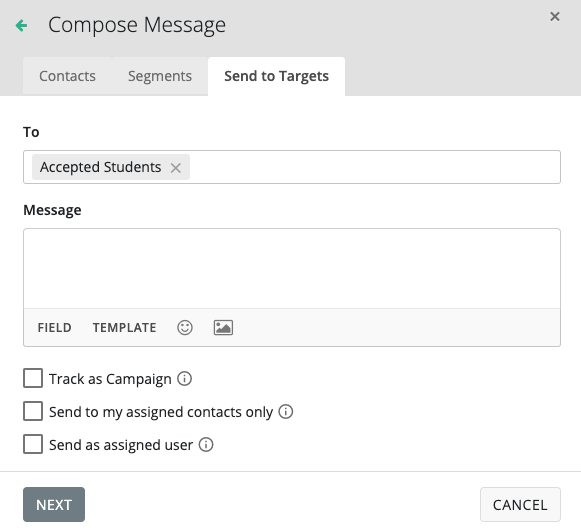 When sending messages to the target, the process is slightly different than sending to a regular list of recipients or segments.