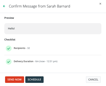 - If choosing to schedule a message for a future date with the “Send to NXT List” feature, please be aware that the message will send to contacts in the List at the time the message sends