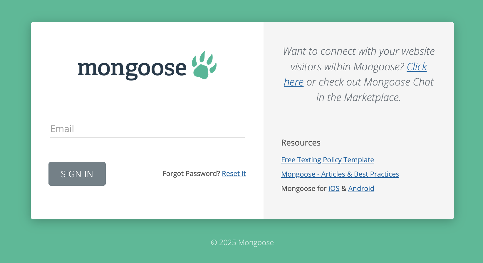 - After verifying with your technology team, contact Mongoose Support (support@hellomongoose.com) to verify that a Mongoose account exists for you.