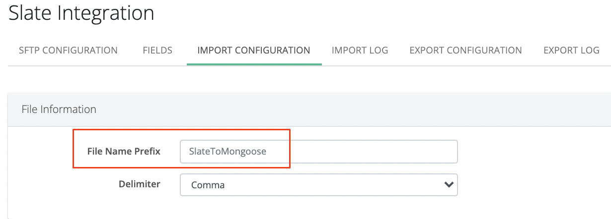 Note that when your import runs, Mongoose will only attempt to import files from Slate that were created on that day. If there are other files in the same location on the Slate SFTP and they have older dates, they will not be picked up.