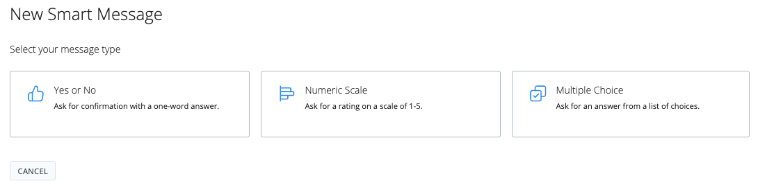 3. There are 3 smart message options to choose from. Once you've selected the type of smart message, configure the following items within the smart message:
