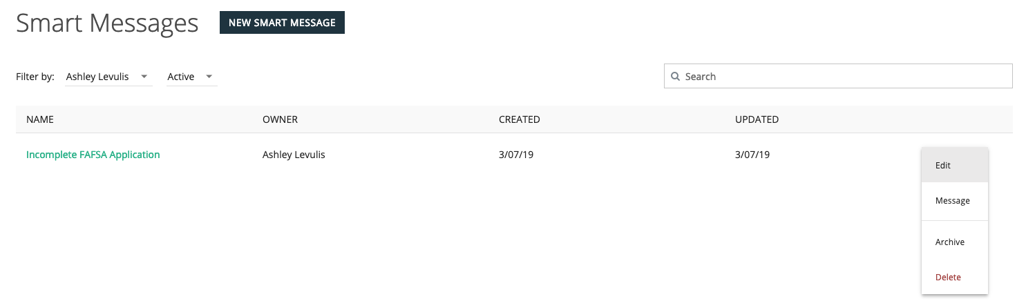 2. Click the three dots to the right of the smart message you would like to edit.