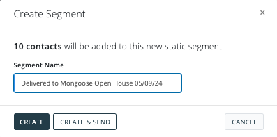 Select "Create Segment". Here, you can name your segment, create (and save for later,) or create & send.